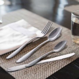 Un buen diseño siempre es importante, en los juegos de cubiertos de mesa no es la excepción, por ello cucharas, tenedores y cuchillos institucionales además de su resistencia ponemos especial atención en sus formas y grabados. Málaga es un set de cubiertos con discreta decoración en el mango y con un excelente acabado espejo, logrado con un pulido a 6 máquinas. Totalmente recomendable para restaurantes, hoteles, comedores industriales y más; para todo tipo de negocio enfocado en servicio a comensales. Detalle que causará una buena impresión.